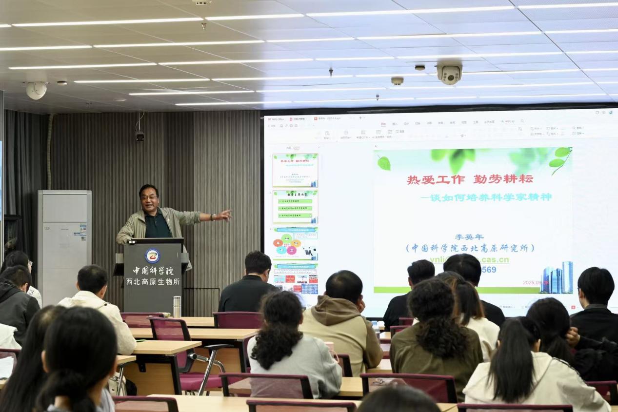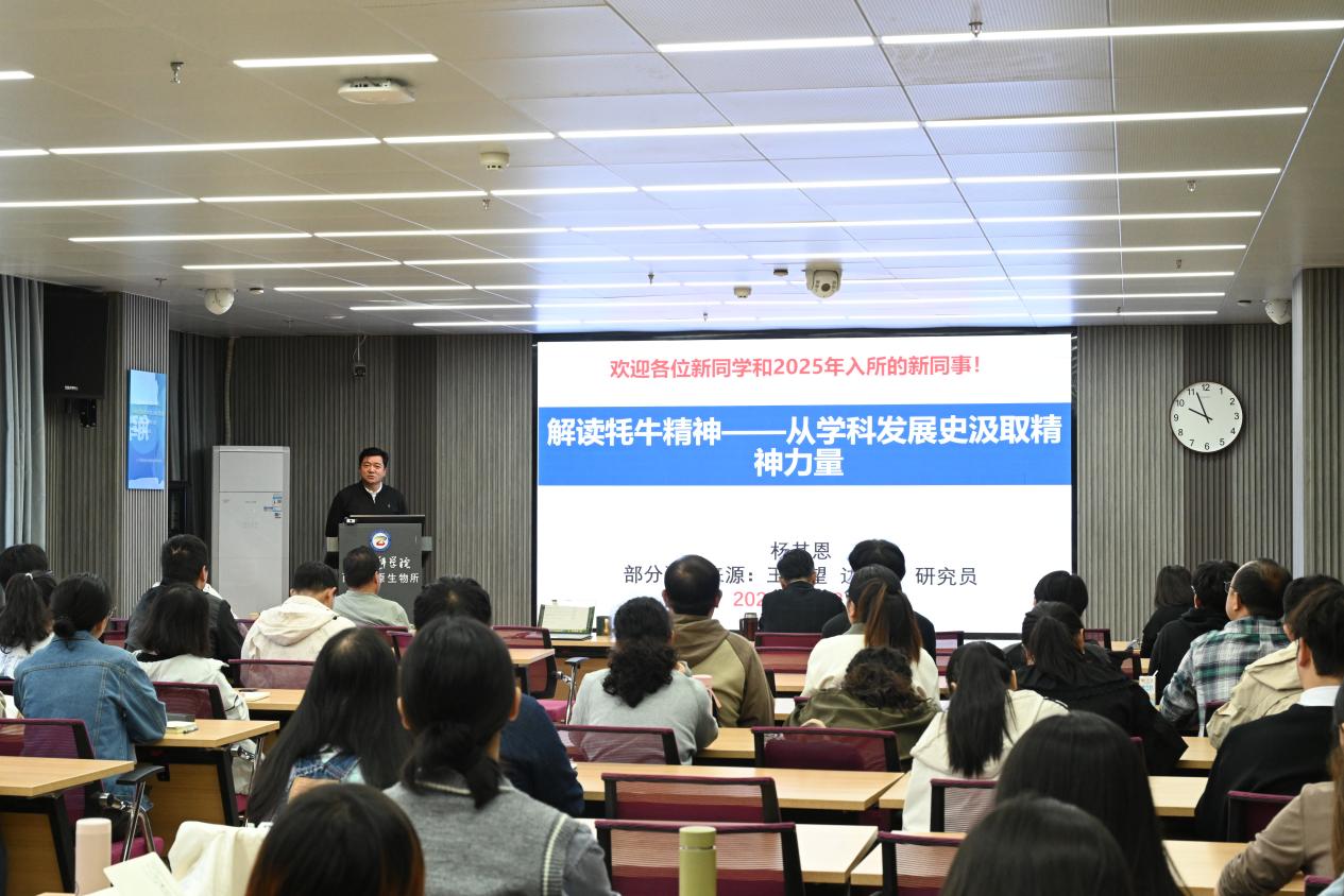 8日上午,入學(xué)典禮在莊嚴的國歌聲中拉開序幕。陳世龍首先作了“弘揚科學(xué)精神,加強學(xué)風建設(shè)”專題報告,強調(diào)了在科研的道路上,傳承好科學(xué)精神,遵循唯真求實、嚴謹本分、非所屬者不取、非原創(chuàng)者謙卑的原則和系好學(xué)術(shù)人生的第一??圩拥闹匾浴kS后,楊其恩作了“解讀牦牛精神——從學(xué)科發(fā)展史汲取精神力量”專題報告,向大家講述了“牦牛精神”蘊含的深刻內(nèi)涵,他希望大家能夠從研究所的文化中汲取精神力量,時刻保持對科研工作的熱情和敬畏之心、求知欲和好奇心。最后,入學(xué)典禮特邀退休職工李英年研究員作了“熱愛工作 勤勞耕耘——談科學(xué)家精神”專題報告,他通過分享40多年的工作經(jīng)歷與感悟,告訴大家精神的培養(yǎng)需要關(guān)注細節(jié)、廣學(xué)博覽、在交流與思考中培養(yǎng)創(chuàng)新意識,以卓然眼界、超群膽識、堅定信念、敢天下之先。