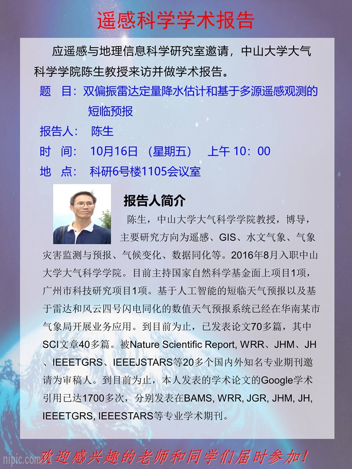 【遙感科學(xué)】10月16日學(xué)術(shù)報(bào)告預(yù)告