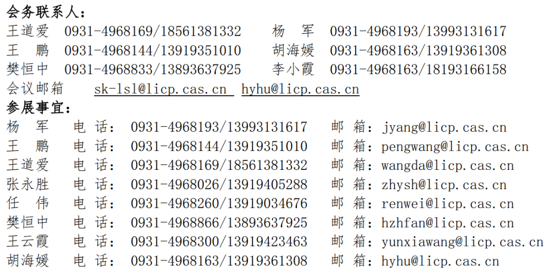 有意參展的單位請(qǐng)于3月10日前與會(huì)務(wù)組聯(lián)系。產(chǎn)品展示0931-4968193,郵箱:jyang@licp.cas.cn;專題展播及廣告宣傳0931-4968144,郵箱:pengwang@licp.cas.cn。