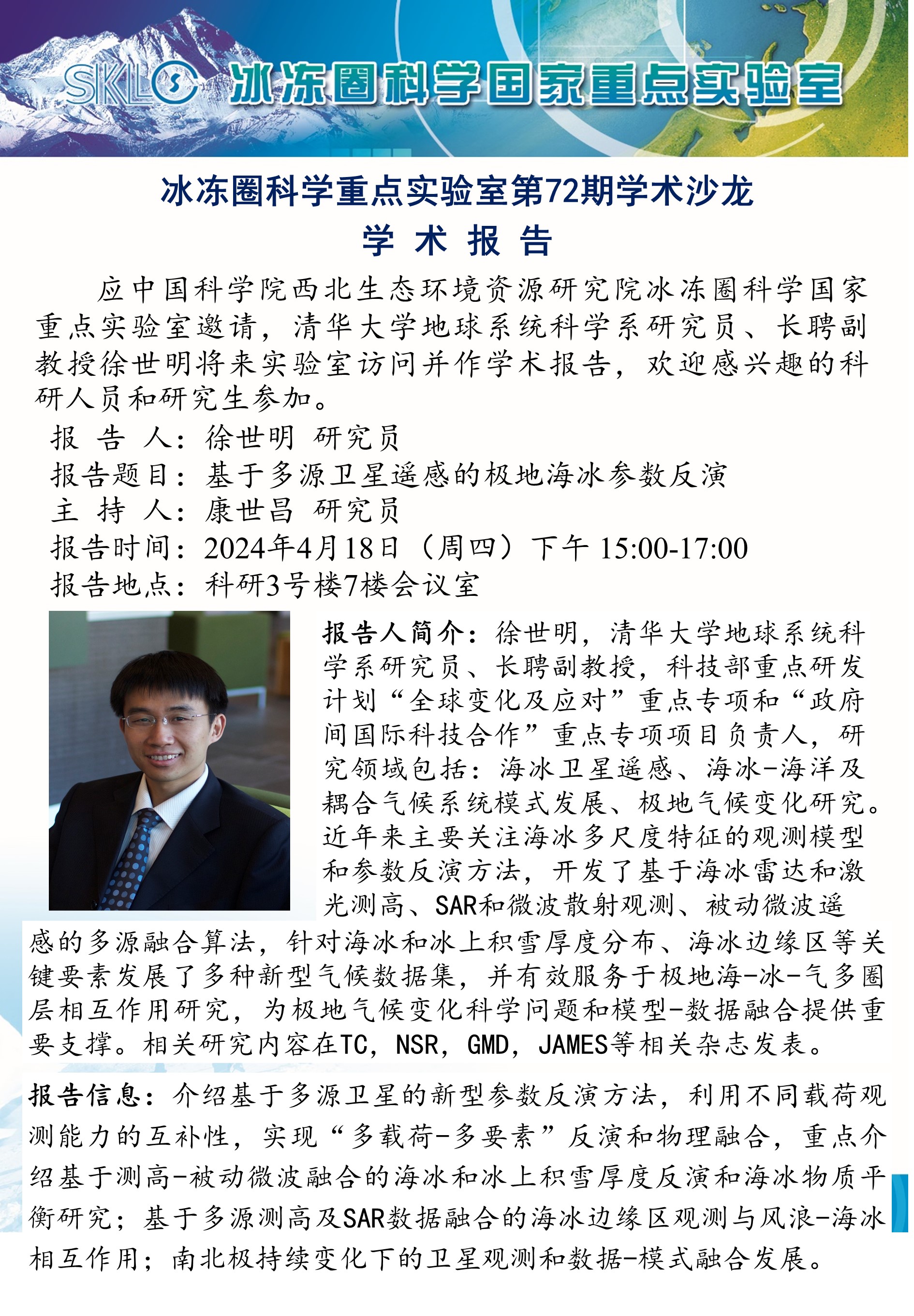 4月18日?|?冰凍圈科學(xué)重點(diǎn)實(shí)驗(yàn)室第72期學(xué)術(shù)沙龍學(xué)術(shù)報(bào)告